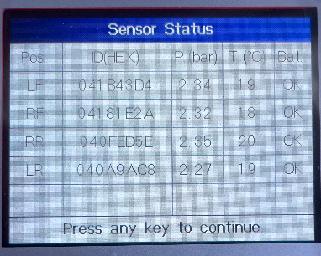 Датчики передают данные о давлении воздуха в покрышках. Батарейки датчиков в хорошем состоянии.